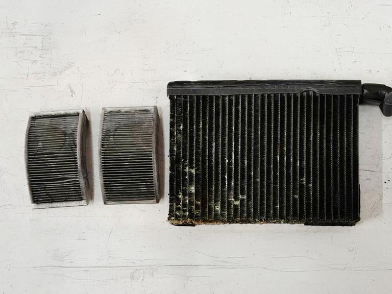 ซ่อมแอร์ BMW X4 F26, G02 แอร์รถไม่เย็น มีกลิ่นเหม็นเคมีในห้องโดยสาร ช่องแอร์ออกแต่ลมร้อน ลมแอร์เบา ตรวจสอบปริมาณน้ำยาแอร์ไม่มีในระบบ ภายนอกไม่พบจุดรั่วซึม ถอดเช็คภายในพบคอยล์เย็นรั่ว กรองแอร์ตัน แก้ไขเปลี่ยนอะไหล่ที่เสียล้างทำความสะอาดเคสตู้แอร์ทั้งหมดก่อนทำการประกอบ ร้านซ่อมแอร์รถยนต์จิระออโต้แอร์ ดำเนินการแก้ไขให้เรียบร้อยครับ
